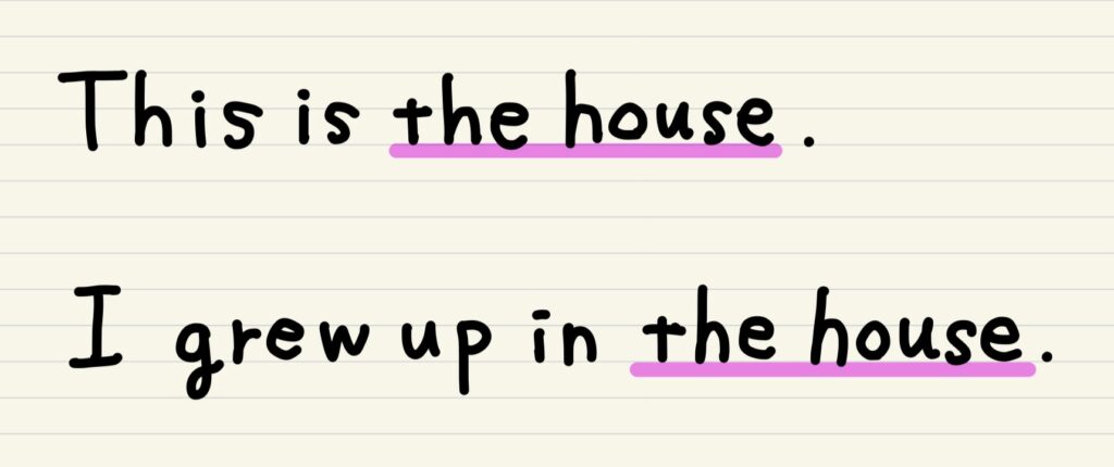 「the house」がどちらの文章にも存在しているので、この言葉を使って2つの文章をつ1つにしたいです。